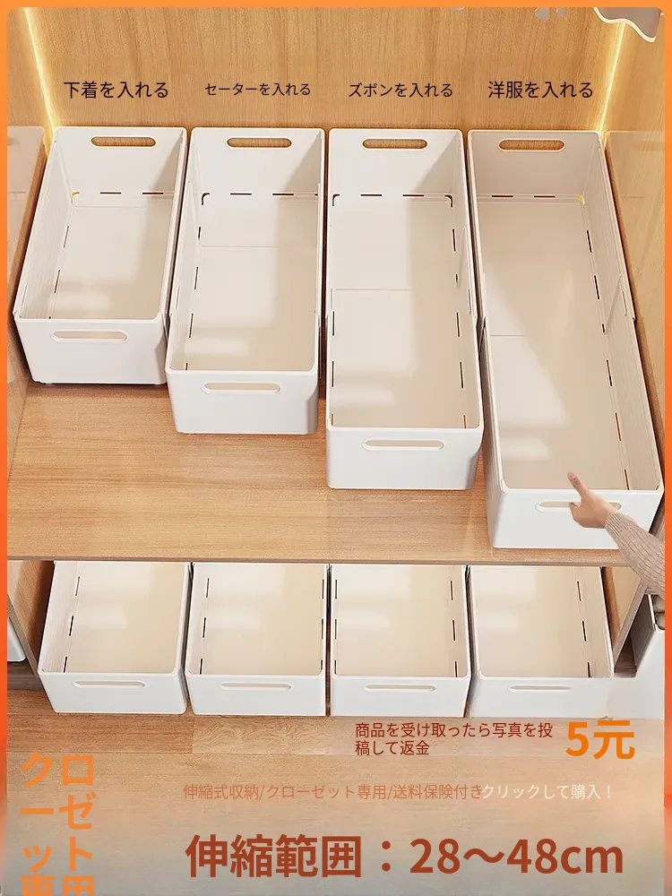 伸縮式収納ボックス - 家庭用クローゼットの収納革命!衣服やパンツをすっきり整理、キッチンキャビネットも整頓できる多機能ボックス。あなたの生活空間を美しく保つ必須アイテム!